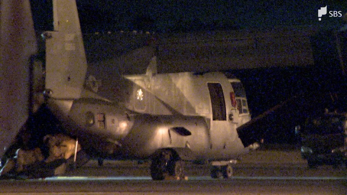 浜松基地などによりますと、2日正午すぎ、アメリカ空軍横田基地所属のCV-22オスプレイ1機が航空自衛隊浜松基地の滑走路に緊急着陸したということです。飛行中に警告灯が点灯したための予防着陸で、けが人などはないということです。機体は現在も基地内にとどまっているということです。