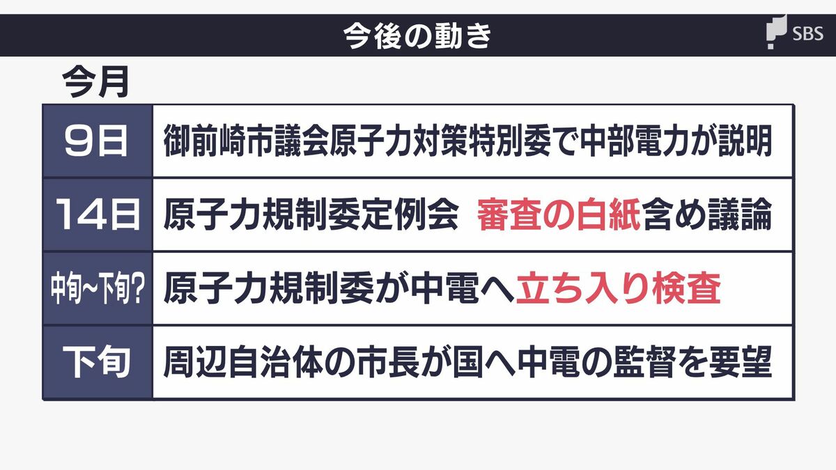 また、規制委員会による中部電力への立ち入り検査、原発の周辺自治体による国への要望などが続く見通しです。