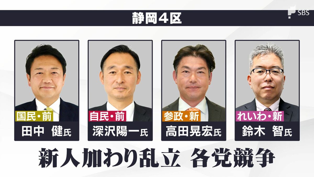 4区:前回当選の国民・田中氏 vs 自民・深沢氏に新人2人が加わる混戦