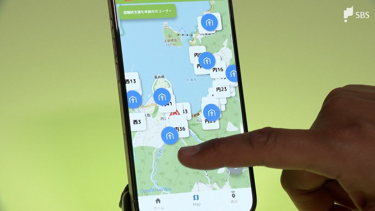「9年生(中学3年)が頑張りましたね。長井崎地域の地図が『マップ』を押すと出てきます。市が想定している『津波避難路』ですが、9年生が取材してきた避難路が写真で出てきます」