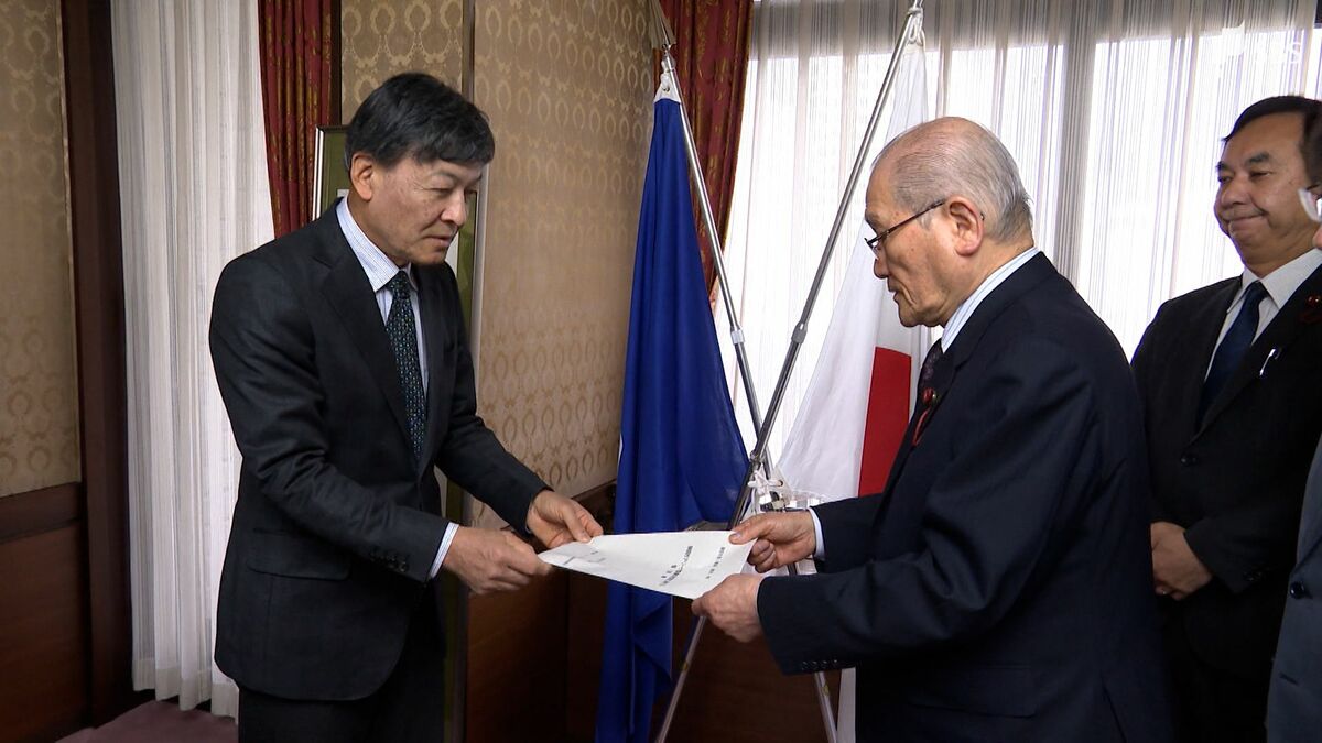 JR東静岡駅北口で建設が予定されている多目的アリーナをめぐり、静岡市議会の特別委員会が難波市長に提言書を提出しました。