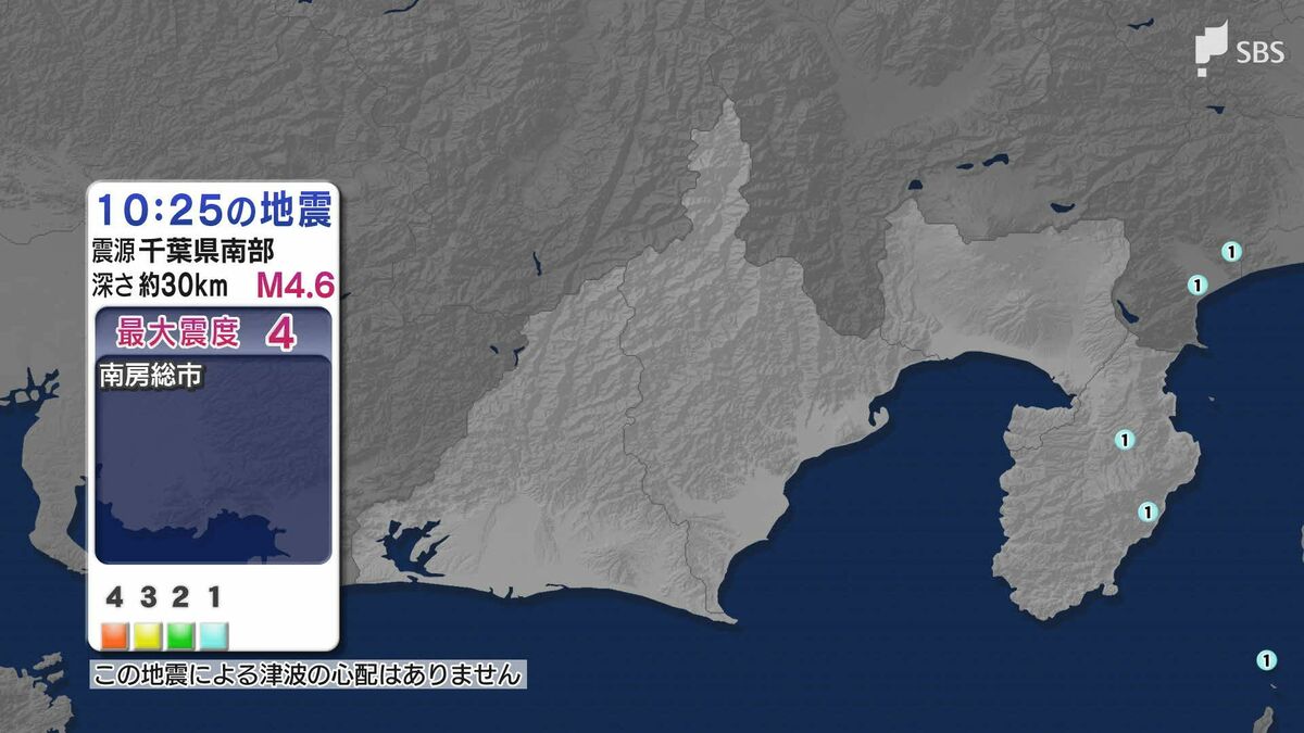 最大震度4を観測したのは、千葉県の南房総市です。