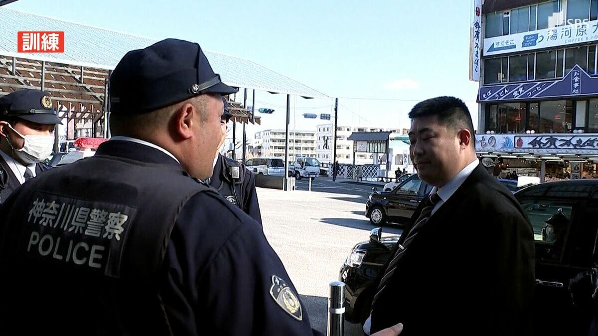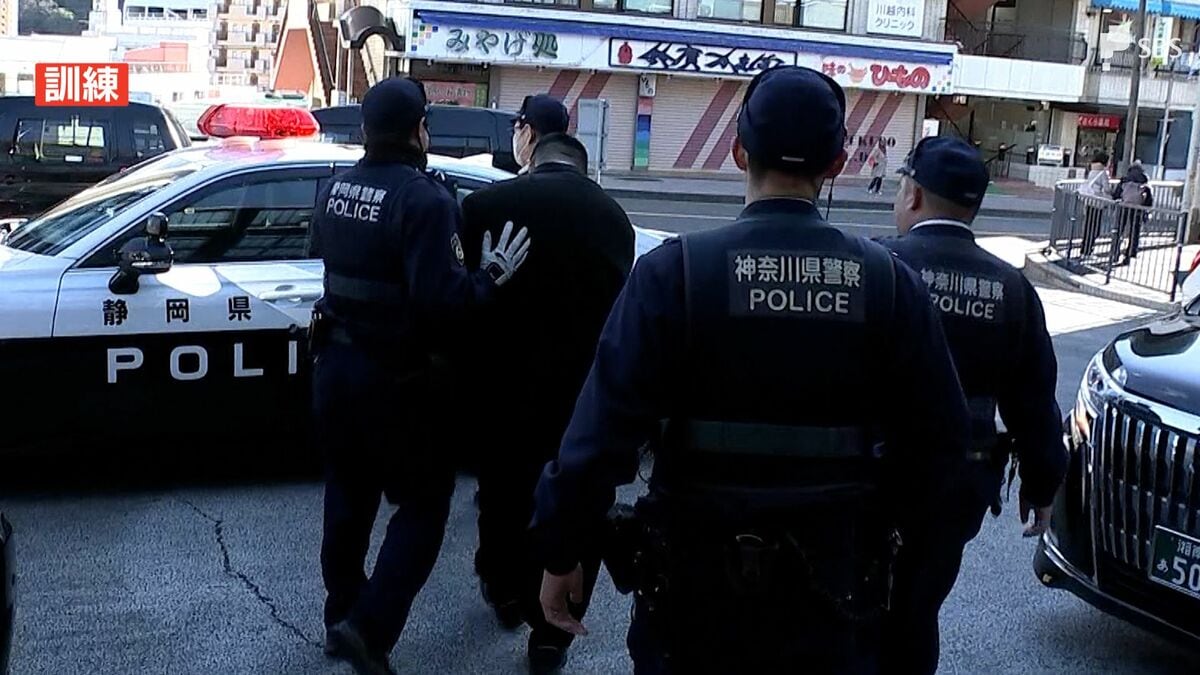 被害者から寄せられた情報をもとに熱海署から依頼をうけた小田原警察署の警察官がJR湯河原駅で容疑者役がタクシーを降りたところで職務質問し、逮捕に至りました。