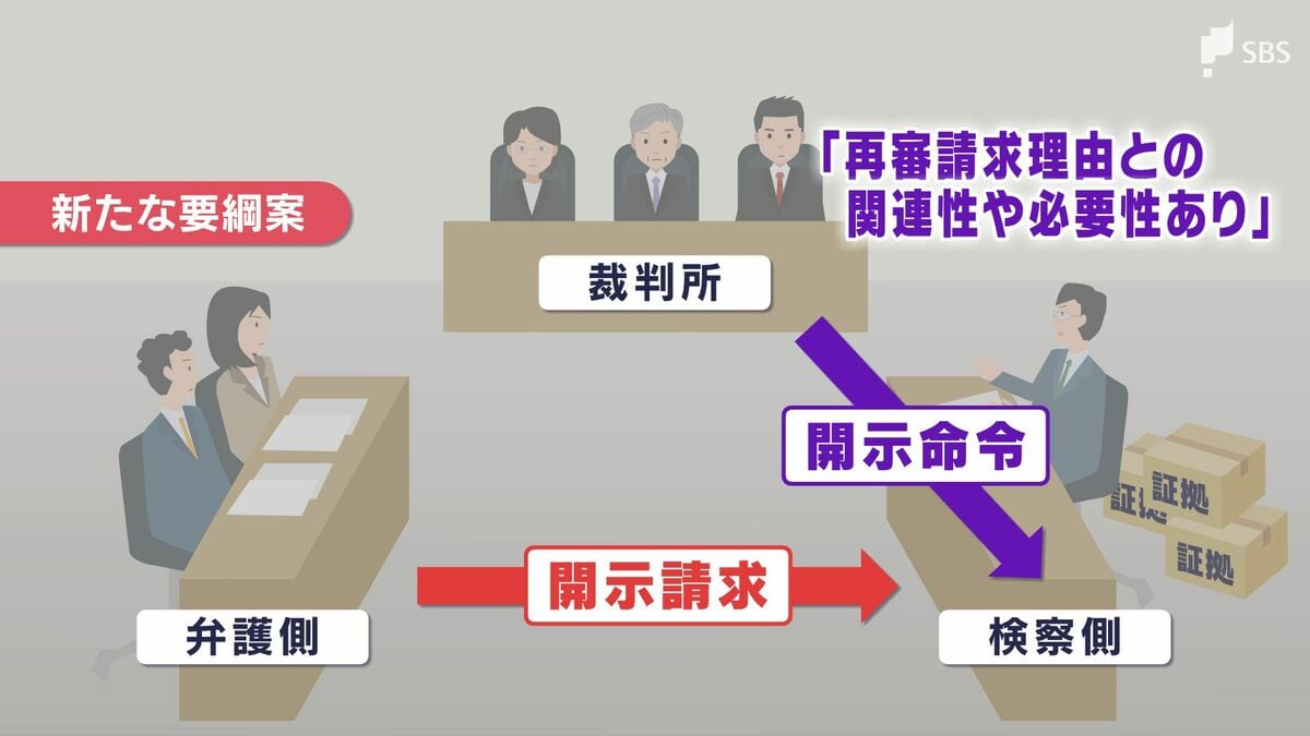これに対し、要綱案では、裁判所が「再審請求理由との関連性や必要性がある」と認める場合のみ、検察に開示命令できる制度が新設されました。