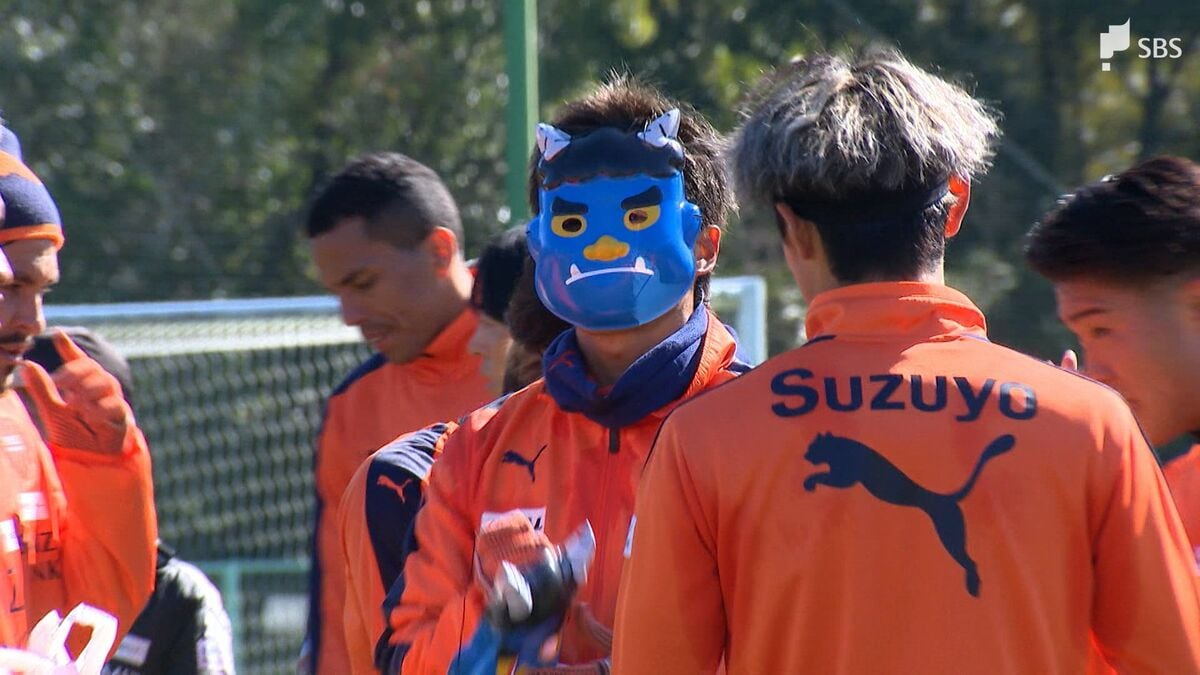 豆まきはこんなところでも行われました。練習を終えた清水エスパルスの選手たちです。