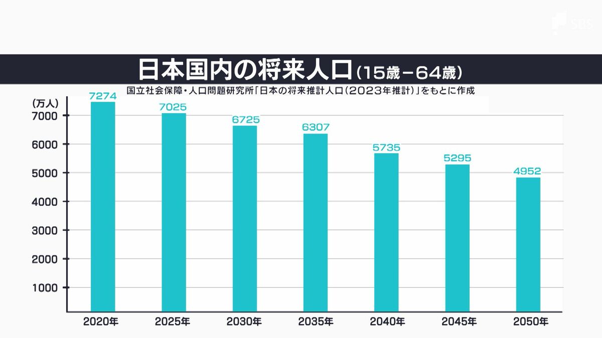 日本が抱える大きな課題の一つが日本人の働き手不足です。その人口は年々減少し、2050年には5000万人を切るとみられていて、対策は待ったなしです。