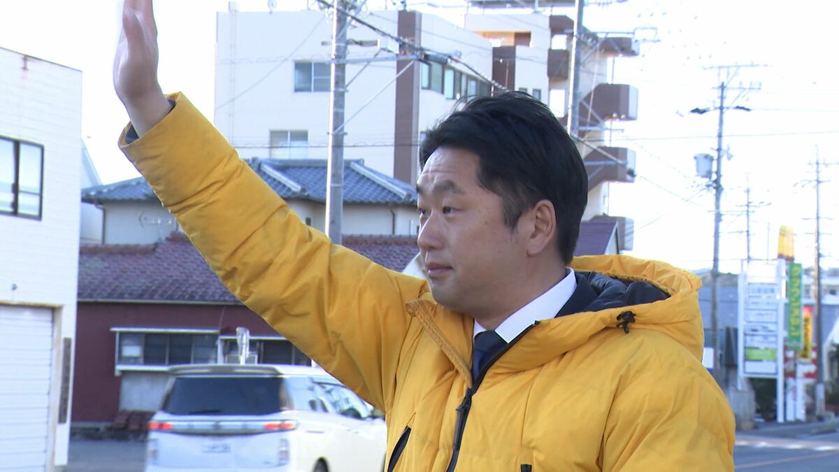静岡8区で初当選した稲葉大輔さんは9日朝、気温0度のなか、浜松市中央区で街頭に立ち、通勤、通学をする人に感謝を伝えました。