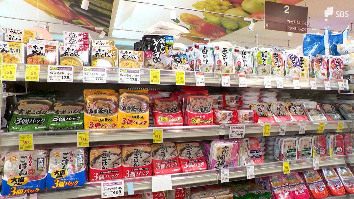 「パックご飯のコーナーです。今まで古米など、もうちょっと前の年の原料が中心だったが、昨年取れた今年の米に切り替わるにつれて値上げが予想されています」