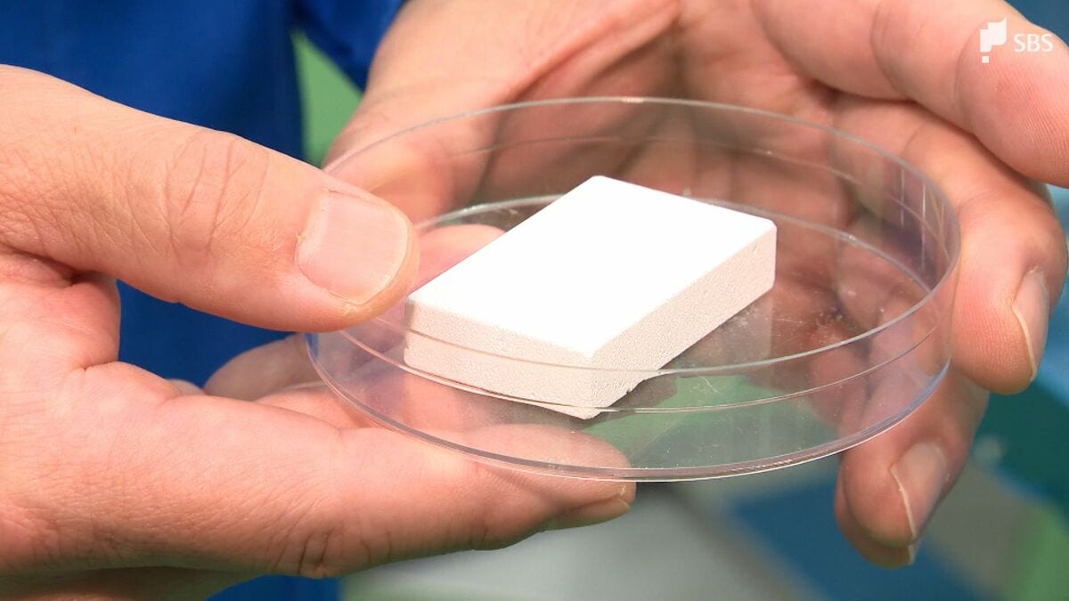 「こちらが弊社で開発、製造している人工骨になります」