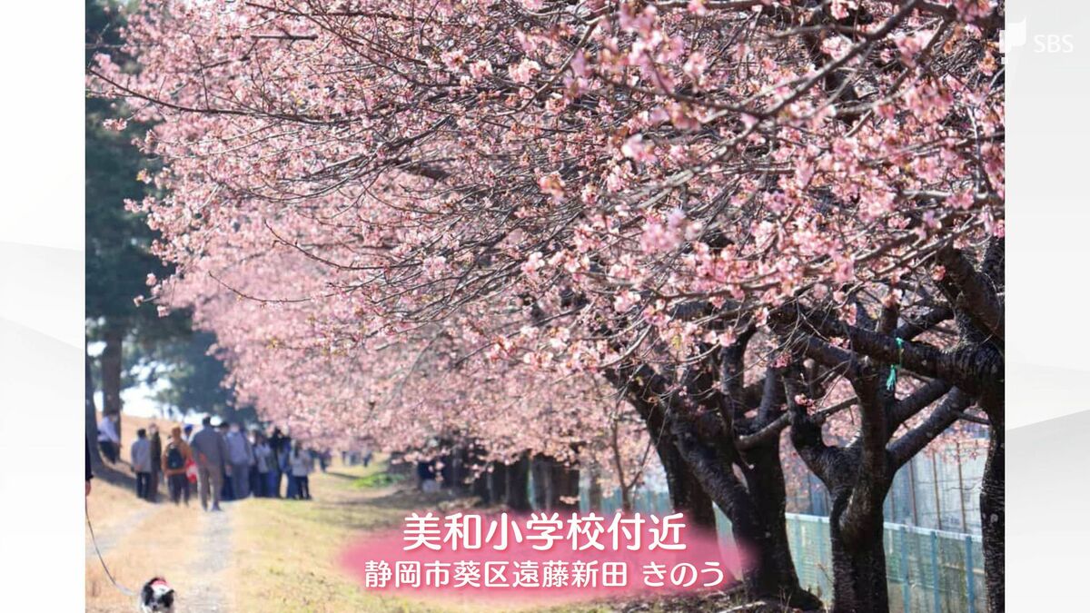 静岡市葵区の美和小学校で2月15日に撮影された河津桜の一種「ニワザクラ」は現在、7、8分咲き。今週末の3連休に向けて満開になる見込みです。
