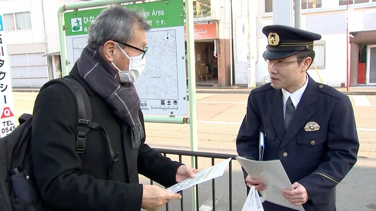 18日は、被害者の男性がタクシーに犯人を乗せたとみられる商店街の近くにある富士急静岡吉原中央駅などに富士警察署の捜査員8人が出向いて、事件の情報提供を呼びかけるチラシを配布しました。