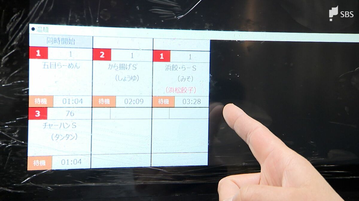 「あと7秒後にスタートするとちょうど時間が合う。同時に提供できるようになる。ラーメンはゆで時間が2分と短いので3分30秒後に、麺を入れると餃子とちょうどタイミングが合うようになる」