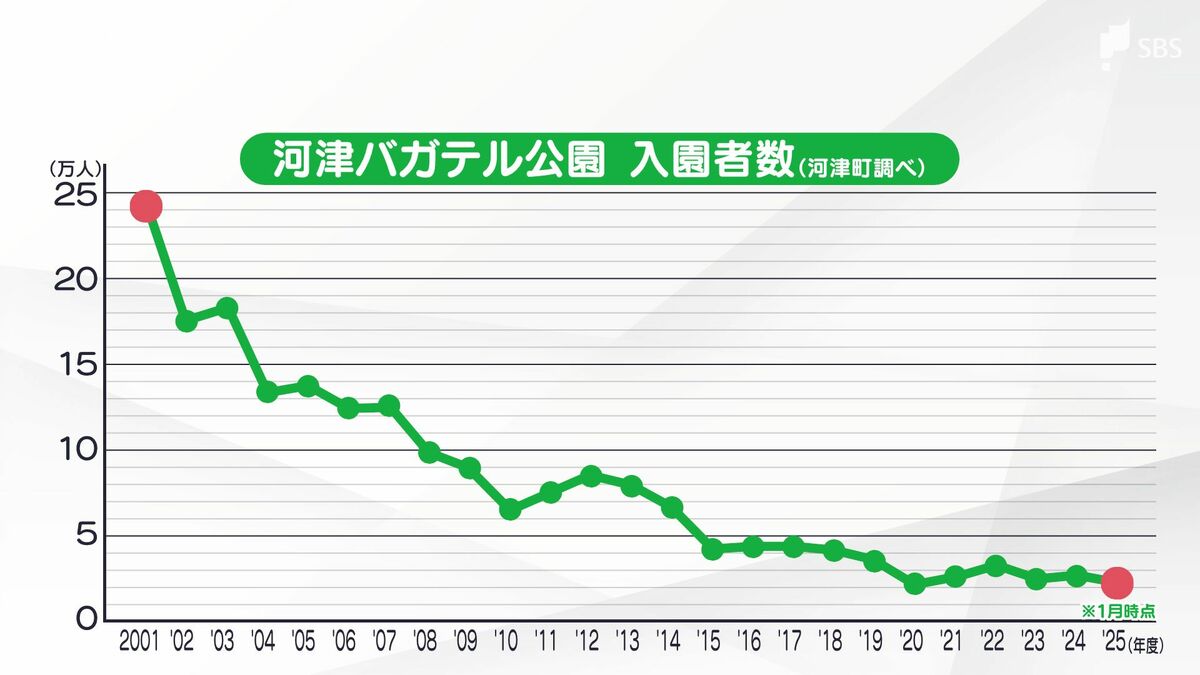 開園当初は約24万人が来園しましたが、減少傾向は止まらず、コロナ禍以降は年間2万から3万人台で推移しました。
