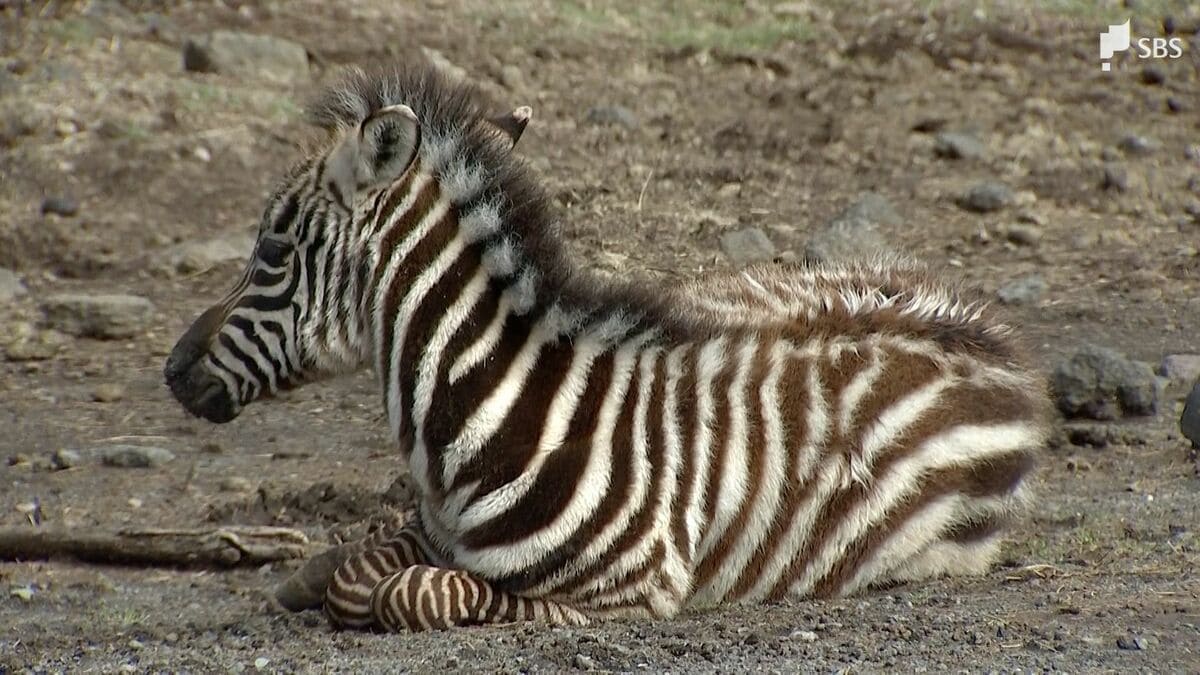 お母さんの近くでぐっすりと寝ているのが、1月3日に裾野市の富士サファリパークで生まれた、シマウマのメスの赤ちゃんです。