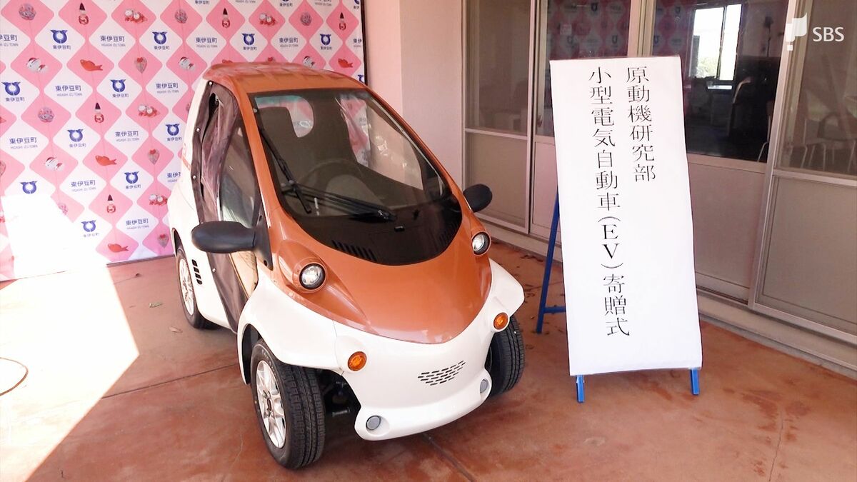静岡県東伊豆町に1人乗りの小型電気自動車が寄贈され、3月4日に式典が行われました。新たな複合施設の業務をサポートする役割を担います。