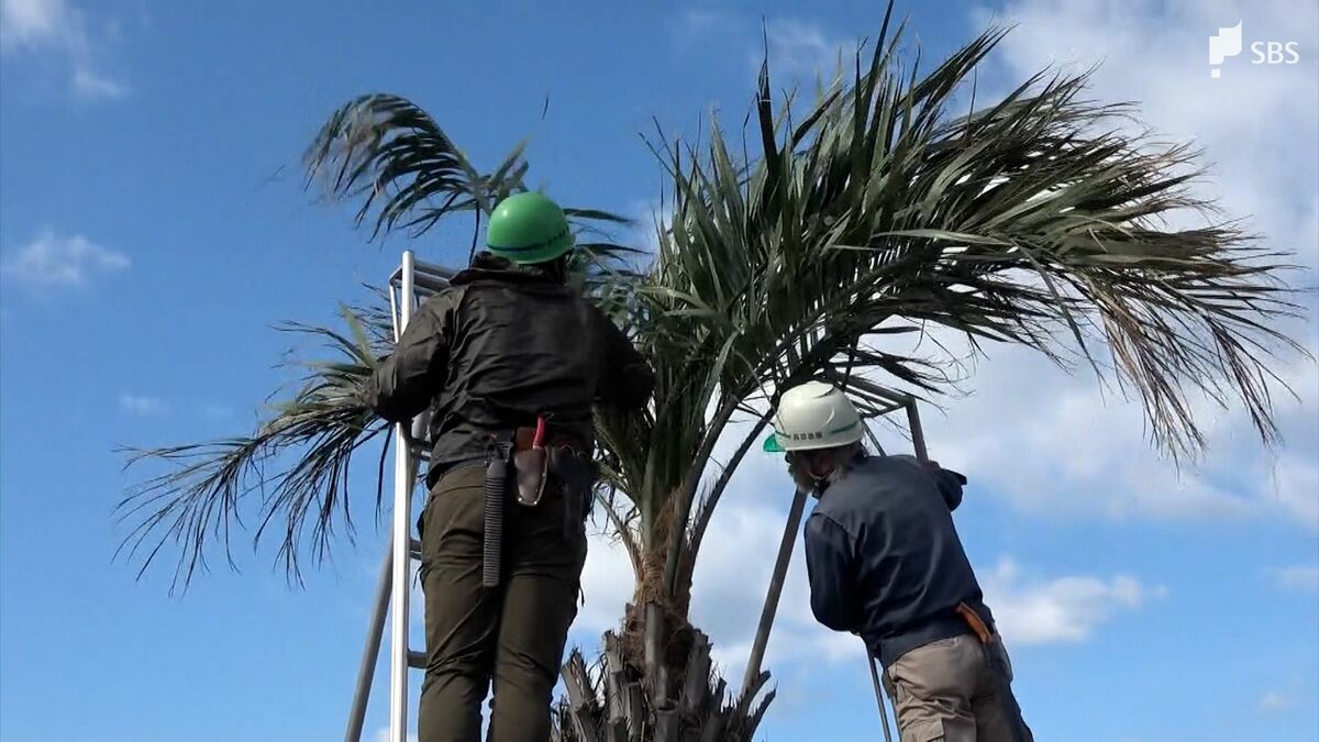 静岡県南伊豆町で3月9日、春の到来を知らせるヤシのコモ外し作業が行われました。