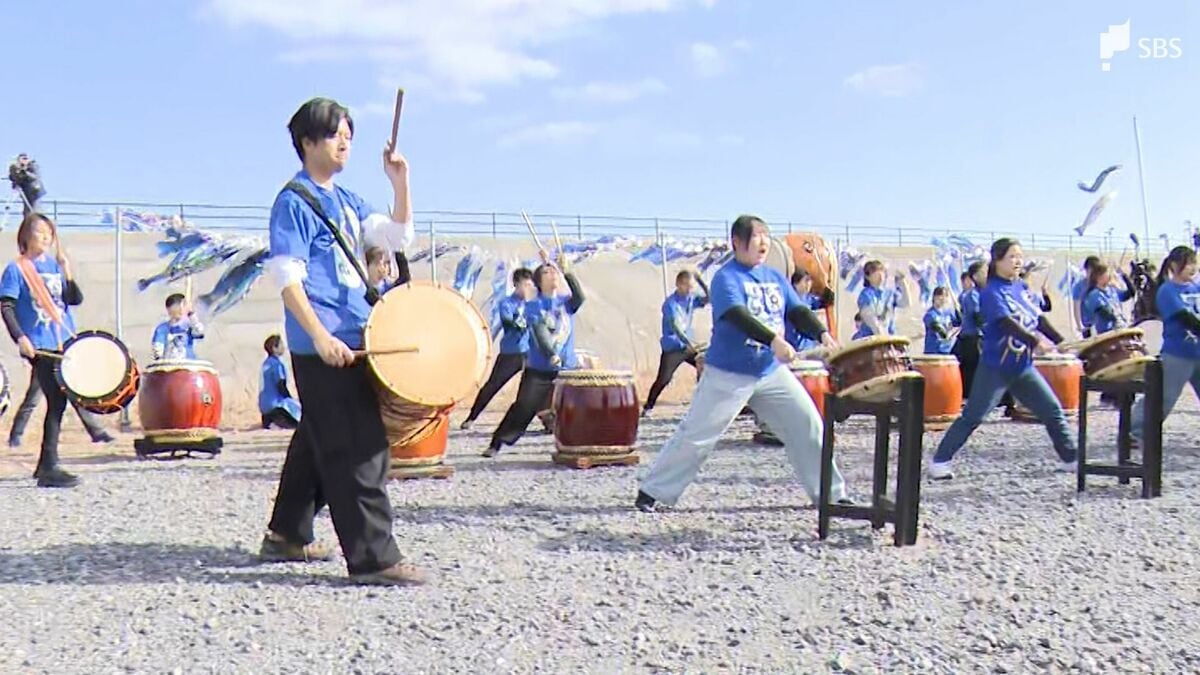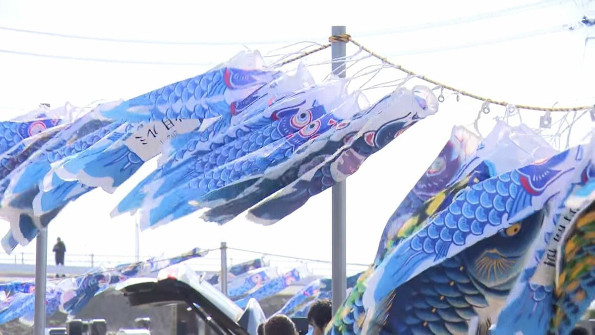 震災の歴史を刻む青い鯉のぼりと未来への新たな希望を掲げ、ことしも人々は空を見上げます。