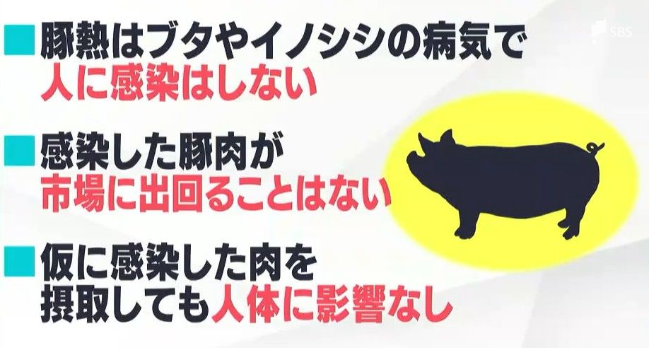 国や県によりますと、豚熱はブタやイノシシの病気で、人には感染しません。ブタは法令に基づく検査体制がとられていて、豚熱に感染したブタ肉が市場に出回ることはないということです。