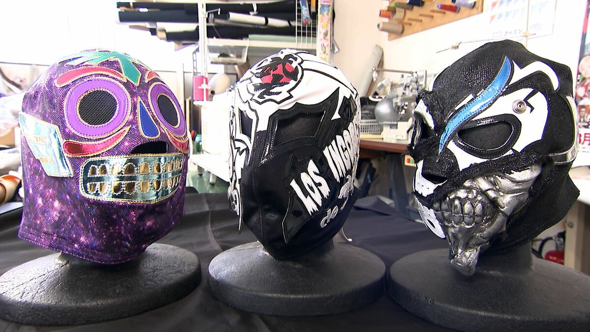 覆面レスラーにとって、マスクはまさに「顔」そのもの。1枚1枚手作りする神谷さんのマスクにはファンが多く、試合ごとにマスクを変えることで知られるBUSHI選手をはじめ、現役レスラーも愛用しています。