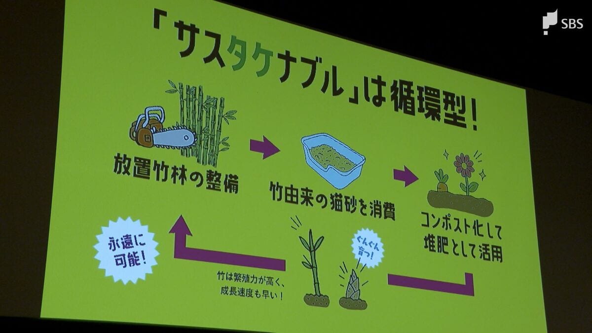 このうち、藤枝市で産廃処理や運送の事業を行う「日本物流」は、放置竹林の竹を活用した猫砂を開発しました。