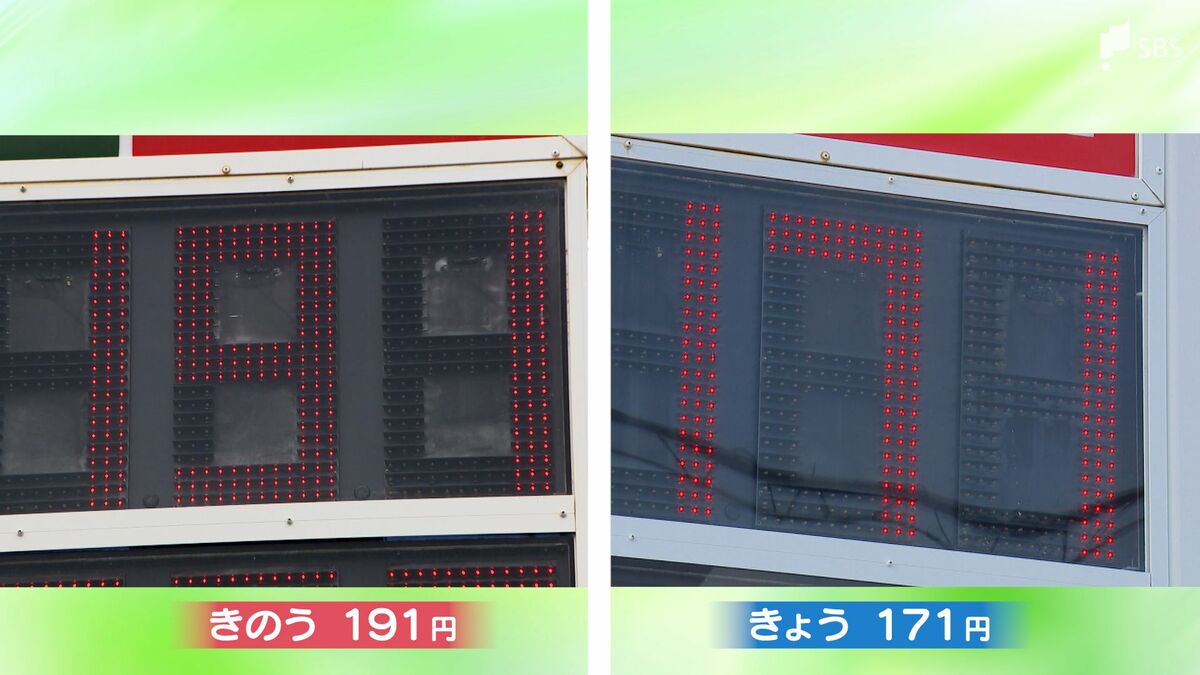 車をよく使う人にとっては待ちに待った朗報です。静岡市駿河区にあるガソリンスタンドでは、18日はレギュラーが191円でしたが、19日から171円となり、20円値下げしました。