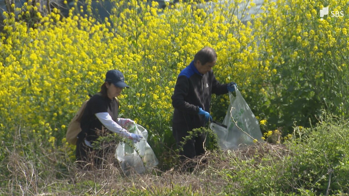 ゴミは年々減っているということですが、菜の花など美しい花々が咲く土手からは空き缶やトタン、自動車部品などのゴミが回収されました。
