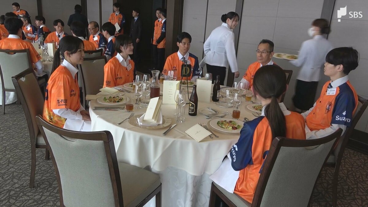 懇親会では2025年に引き続き、非売品の清水エスパルスのベースボールシャツが配られ、スポーツを通じた地域貢献にも取り組む意識を高めていました。