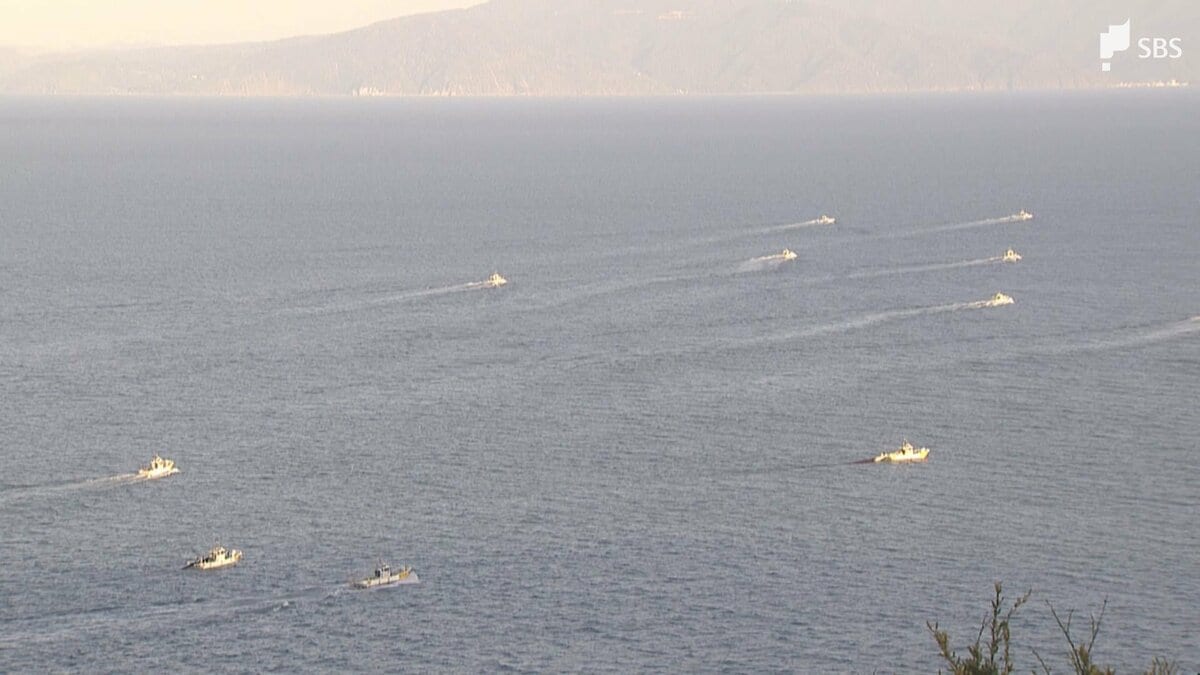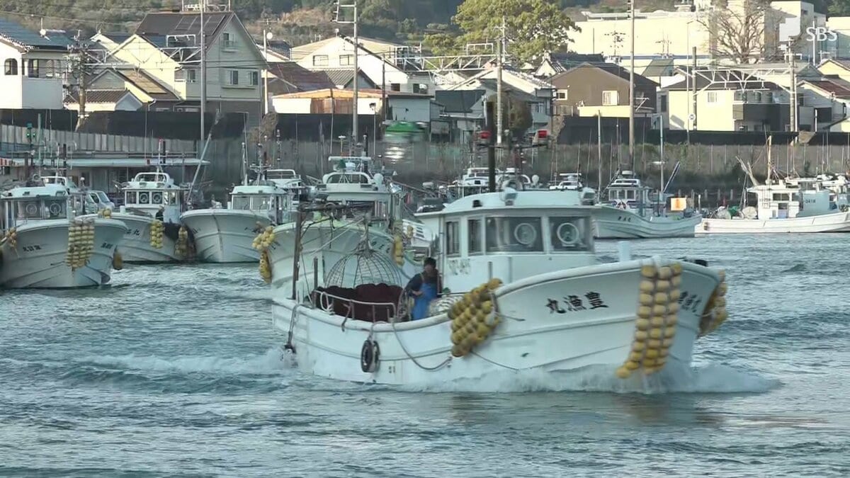 「午後5時です。今シーズン初めてのサクラエビを求め多くの船が出港していきました」